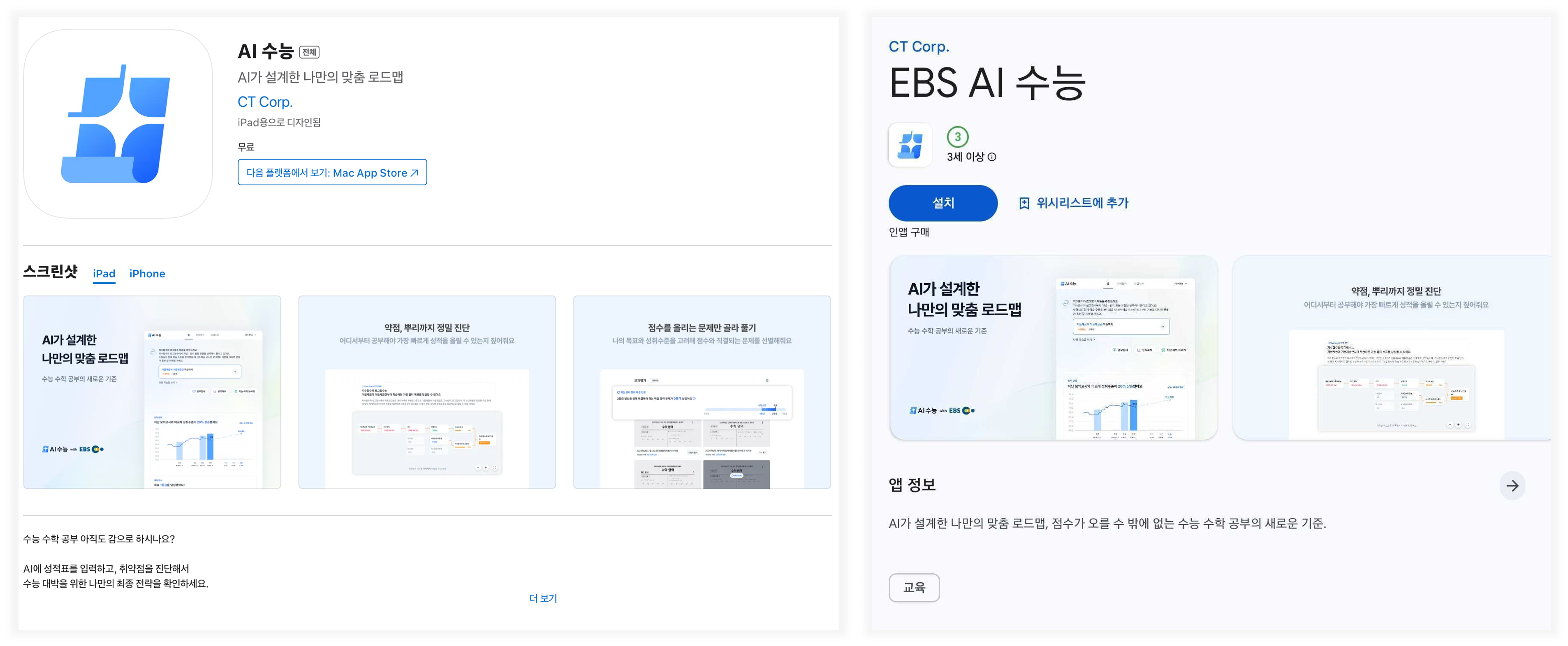 [업데이트] AI 수능 Android/iOS 앱 출시 Classting Support 2025년 09월 25일 06:03 업데이트 시간 AI 수능을 이제 모바일 앱에서도 만나보실 수 있습니다.언제 어디서든, 더 편리하게 AI 수능을 활용해보세요. ⬇️ 다운로드 링크 구글 플레이스토어 앱스토어 기존 계정으로 로그인하면 PC와 동일하게 이용하실 수 있습니다.앞으로도 지속적인 업데이트를 통해 더 다양한 기능을 제공할 예정입니다.
